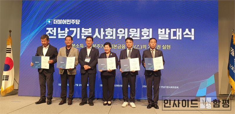 [인사이드함평= 정다운 기자] 지난 7일 더불어민주당 중앙당 부대변인 박노원이 이재명 당대표가 전국위원장으로 있는 전남기본사회위원회에서 부위원장 임명장을 여수엑스포 컨벤션센터 컨퍼런스홀에서 수여 받았다. 박노원 부대변인은 "전남기본사회위원회 부위원장으로 임명된 것을 큰 영광으로 생각하며, 국민의 기본적인 삶을 보장하