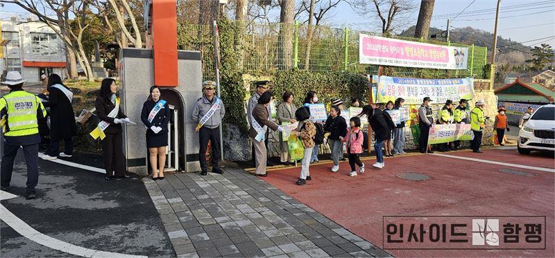 전라남도함평교육지원청(교육장 박정애)은 6일(수) 오전 함평초등학교에서 신학기를 맞이하여 우리 학생들이 안전하고 즐거운 학교 생활을 시작할 수 있도록 함평경찰서와 함께 학교폭력예방 캠페인을 진행하였다. 이번 합동 캠페인은 학교 구성원이 배려하고 존중하는 마음을 갖고 폭력을 지속적으로 예방하여 안전하고 평화로운 학교 문화