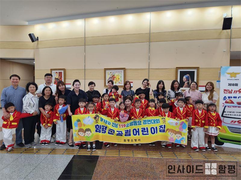 함평군공립어린이집이 지난 23일 화순 하니움문화스포츠 센터에서 개최된 ‘제 18회 전남 119소방동요 경연대회’서 유치부 우수상을 수상했다. 올해 18번째를 맞이한 이번 대회는 소방동요를 통해 꿈과 희망을 노래하고, 안전문화를 즐기며 배우는 기회를 제공하고자 개최됐다. 함평소방서 대표로 참가한 함평군공립어린이집은