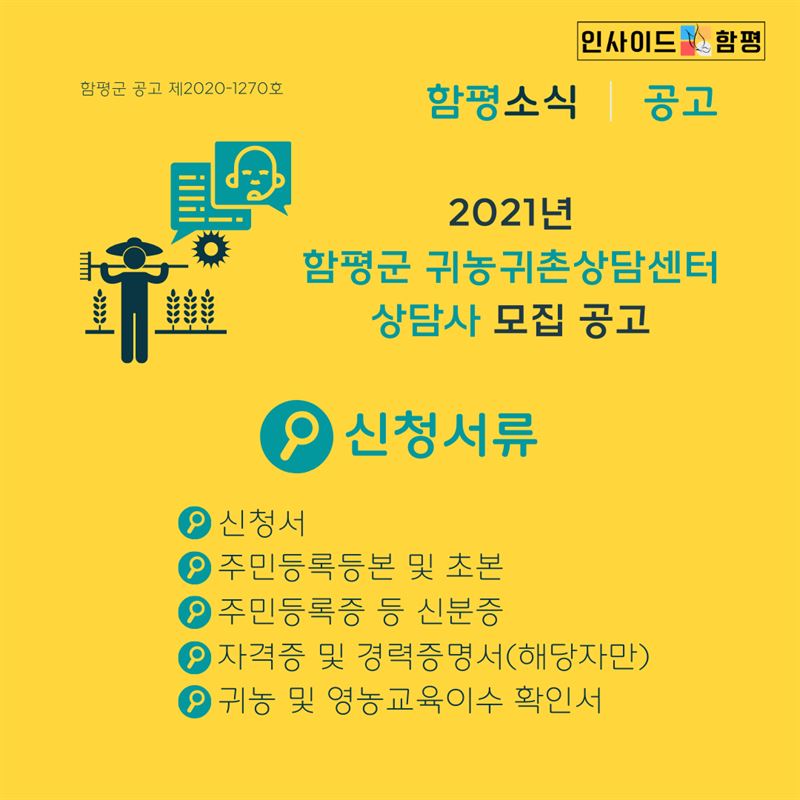 2021년 함평군 귀농귀촌 상담센터 상담사 모집 공고 및 신청서