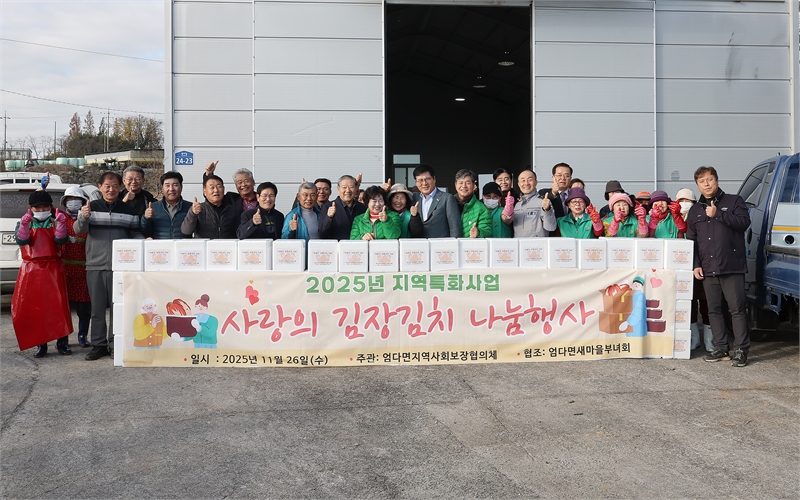 특히 김장 재료는 엄다면 주민들이 직접 재배한 배추와 각종 식재료의 기부로 마련돼, 지역이 함께 만드는 나눔의 의미를 더했다.